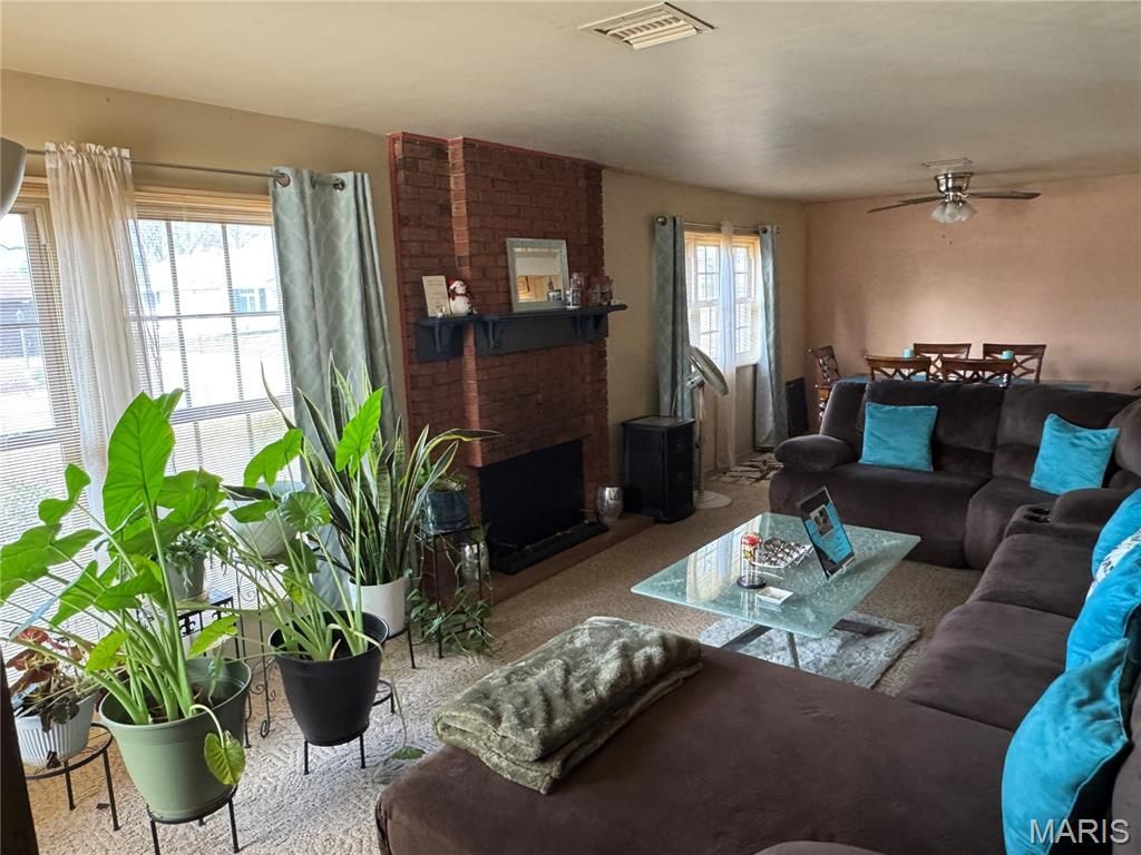 Welcome Home!This charming ranch-style home offers a peaceful country feel while still providing comfort, space, and convenience. The well-maintained home features a spacious primary bedroom with an ensuite bath and HUGE double closet, along with two additional guest bedrooms and a second full bathroom.Inside, you'll find multiple living spaces including a living room with a classic masonry gas fireplace, a comfortable family room, and a bright sitting room/breezeway that adds character and flexibility to the home. The kitchen offers plenty of cabinetry for storage and is complemented by a convenient laundry room. A mud room provides additional functionality and organization.Major system updates provide additional peace of mind, including: New Roof (2022) New Central Air Conditioning System (2021) New Hot Water Heater (2023) New components in the boiler (2025) Electrical panel scheduled to be upgraded in 2026 to bring it up to codeStep outside to enjoy the private backyard, complete with a privacy fence, storage shed, and a spacious covered patio-perfect for relaxing or entertaining family and friends.The home also features a two-car garage and is conveniently located near schools, shopping, and Scott Air Force Base.